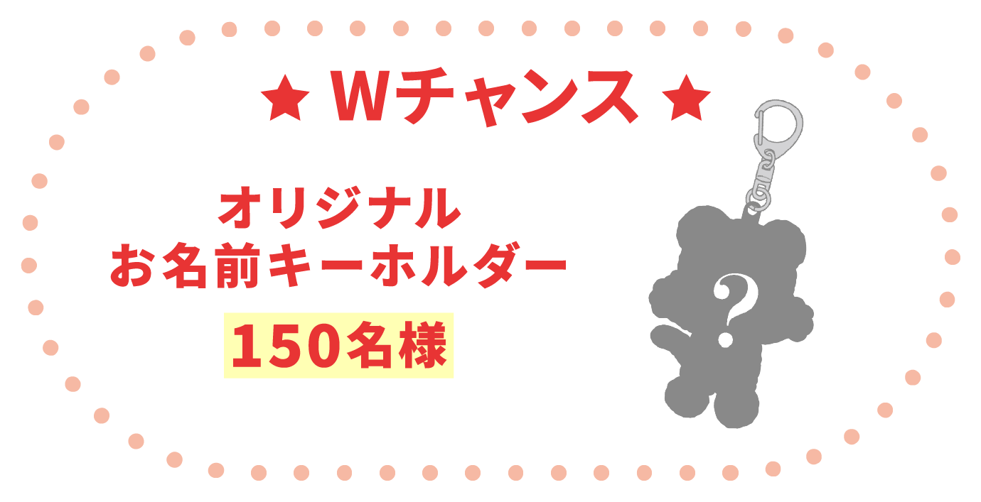 また、はずれた方の中からWチャンスとして抽選で150名様にオリジナルお名前キーホルダーが当たります。